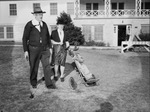 Seventy-eight-year-old J. F. Roberts plays at Rockwood Park Golf Course several times weekly, accompanied by his wife, 74, who caddies with aid of push cart. Published in the Fort Worth Star-Telegram morning edition, March 3, 1946.