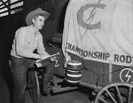 Southwestern Exposition and Fat Stock Show; Brown, Howard; Lightning C. Ranch; Cowboy boots; Jeans (Clothing); Carriages; Wagons; Barrels