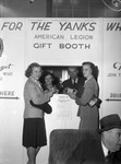 Misses May Belle Carter, left, and Mayme Conner, Camp Fire Girls field workers, turn in Christmas packages for wounded service men. Behind the counter are Miss Helen Clark and J. W. Atkins, the general chairman for the drive. The two women are shown giving small gifts at the American Legion's Hotel Texas collection booth. An unidentified man is sitting in the foreground. Star-Telegram Evening Edition December 8, 1945
