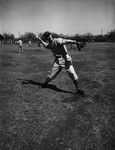The Fort Worth Cats, a minor league affiliate of the Brooklyn Dodgers, are preparing for the upcoming 1946 season. Warming-up for a Spring Training game is Charles Samaklis, a leading candidate for the Cat pitching staff. Samaklis last pitched in the Georgia-Florida League in 1941 before serving in the military. He is a veteran of the European Theater. The right-handed pitcher is shown going into his wind-up. He is dressed in a baseball uniform.