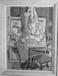 Paintings. "Still Life", by Edmund Kinzinger of Waco, Texas. Mr. Kinzinger won honorable mention in the exhibit of West Texas Art. The painting includes images of a chair, a vase, a bowl and a table.