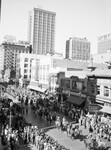 Southwestern Exposition and Fat Stock Show Parade. Crowds line the street. Downtown Main and Houston Streets were jammed for the parade. Although the crowds were well behaved it took every effort on the part of police along the line of march to keep the streets open. The view was taken at Ninth and Houston Street. Star-Telegram Morning Edition March 9, 1946
