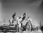 Southwest Exhibition and Fat Stock Show parade. Color bearers, left to right, Bill McGuire, Phoenix, Arizona and Weldon Young.