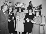 Tom Breneman congratulates final winners, left to right, Mrs. Leslie Huchingson, 849 N. Wood; Mrs. Royce Cockran, 3652 Bertrose; Mrs. A. B. Cogdell, 728 Hawkins, and Nonarea Cunningham, 908 E. Harvey.