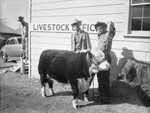 Southwestern Exhibition and Fat Stock Show Champions. Hugh Fitzsimmons, San Antonio, and his prize winner, "Double Muleshoe." A boy showing his Hereford steer that won first place in a class for heavyweight Hereford steers at the Boys' Baby Beef Show.
