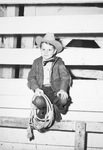 Six year old Jackie Howell in his cowboy attire and rope. He aspires to be a calf-roper.