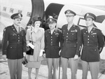 Southwestern Exhibition and Fat Stock Show Visitors. Left to right, Colonel John Pugh and Mrs. Pugh, Colonel O. I. Holman, General Jonathan M. Wainwright and Lieutenant Colonel Tom Dooley. General Wainwright and his aides arrive to indulge in the new found interest in ranching by visiting the Southwestern Exhibition and Fat Stock Show.