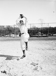 The Fort Worth Cats, a minor league affiliate of the Brooklyn Dodgers, are preparing for the upcoming 1946 season. Warming-up for a Spring Training game is pitcher Pete Zmitrovich. He is making a strong bid for a regular berth on the Cats' pitching staff. Zmitrovich is a six-foot right-handed pitcher. He is shown entering the wind-up of his motion. He is dressed in a baseball uniform.