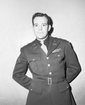 Captain Wallace Matthews. Captain Matthews is standing in front of an empty wall wearing a military uniform and his hands behind his back. He has served in the military for five years and is currently on terminal leave. He is returning from Europe where he served with the 78th Division for 17 months. He is the son of Mrs. Flora Elizabeth Nehrmeyer.