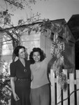 Thelin, C. Milo (Mrs.); Thelin, Nyla Jean; Macrostachya Wisteria; Vines; Flowers; Houses; Fences; Backyards; Dresses; Sweaters; Necklaces; Trees; Oaks