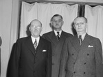 Western Petroleum Refiners Association. Left to right: H.T. Ashton (left) of Saint Louis, Missouri, W. W. Vandever, Cleveland, Ohio and T.A. Helling, El Dorado, Kansas. The trio of men are shown standing in front of the curtain of a large window. Each of them are dressed in dark, single/double-breasted suits and eyeglasses. This group represents some of the refiner officers that came to the meeting.