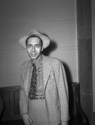 Charlie Beland, who is involved in the Green Dragon narcotic case concerning a nationwide drug smuggling syndicate. He is wearing a suit, a necktie and a hat.