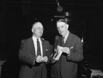 Elks Club mortgage burning ceremony participants Max Bergman (left) and Tom J. Brown.