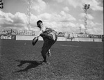 The Fort Worth Cats, a minor league affiliate of the Brooklyn Dodgers, are preparing for the upcoming 1946 season. One of the top Spring Training prospects is Joe "Red" Bielemeier, an eighteen-year old pitcher from Mt. Angel Oregon. Red has been on fire this spring. The right-handed hurler is shown warming-up in the bullpen. He is getting the starting nod Sunday against the Memphis Chicks.
