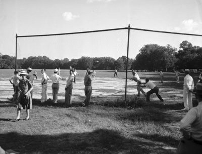 A view of Star-Telegram picnic at Forest Park. The unidentified persons in the pictures appear to be playing baseball. (no clipping)