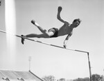 A track meet is being held at Farrington Field in Fort Worth, Texas, Saturday afternoon. Competing in the high jump for Birdville High School is J. W. "Dub" Stewart. He won the right to compete in the regional track meet with this leap in the District 11-A competition. Stewart finished second to Joe Kemp of Masonic Home and School.