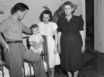 The Beverly Family is looking for a new home after being asked to move from their one-room apartment due to the housing shortage in Fort Worth, Texas. Pictured left to right are Bland R. Beverly, Gary Don Beverly, Mrs. Bland R. Beverly, and Mrs. Ethel McDonald. They are gathering around Gary Don's crib. Mr. Beverly is a veteran of the United States Army. He is wearing a button-up shirt and trousers. Gary Don, 16 months, is dressed in a onesie. Mrs. Beverly is wearing a polka-dot dress. Her aunt, Mrs. McDonald, is wearing a dark dress.