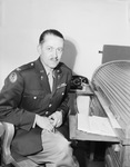 Colonel Walter E. Dorre is an Army Chaplain with the 8th Air Force. He spent 35 months overseas in England. He returned home to accept the call as pastor of Saint Paul's Lutheran Church in Fort Worth, Texas. He will assume his new duties upon his release from the Army. He will succeed Reverend Victor L. Behnken, pastor of the church since 1933. Colonel Dorre is shown sitting at a desk, dressed in his military uniform.