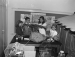 Twenty-three third grade students from Sam Houston Elementary School in Denton, Texas, are visiting Fort Worth, Texas, to study life in the big city and visit the children's museum. Pictured left to right, at the museum are Bernie Kay Allen, Mickey Cole, Jane Ellen Dysart and Barbara Ann Armstrong. They shown at a nature exhibit with a stuffed owl. The museum was put together by the second grade class at South Hi-Mount Elementary.