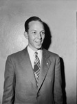 Clifford King is returning to work in the Sports Department of the Fort Worth Star-Telegram. He left the newspaper on December 10, 1941 to serve with the Coast Artillery in the United States Army. Mr. King spent time in the Aleutians during his service. He was recently discharged and is one of the many war veterans rejoining the telegram. Mr. King is shown standing against a wall, dressed in a suit.
