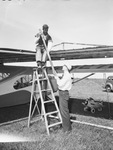 Robertson, V. K.; Wright, Lynn; Robertson Field; Airplanes; Hangars; Ladders; Construction; Pipes; Coveralls; Automobiles