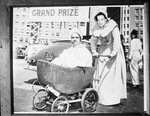 The Shriner Parade is traveling through downtown Fort Worth, Texas. The event opens a spring ceremonial. Two of the clowns participating in the parade, left to right are Langford Carlton and Mike O'Farrell. Mr. Carlton, a former United States Marine is shown riding in a baby carriage and smoking a cigar. Mr. O'Farrell, a former Seabee, is pushing the buggy.