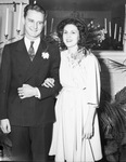 Dresses; Fireplaces; Weddings; Flowers; North Texas State Teacher's College; Burgess, Richard M., Jr.; Burgess, Richard M., Jr. (Mrs.); Burgess, Gladys Louise (Mrs.); Byers, Gladys Louise (Miss)
