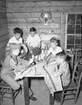 Boy Scout Troop 38 is preparing for the upcoming Boy Scout Circus on May 4. A group of five scouts are sitting around table, working on the decorations. They are shown hand painting canvas blankets.