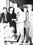 The Texas Electric Show of 1946 is being held at Will Rogers Memorial Coliseum in Fort Worth, Texas. Visiting the show, center, are Mr. and Mrs. J. A. Wixson. They are impressed by the electric dishwashers on display at the convention. Mrs. Wixson is wearing a dark dress and a pearl necklace. Mr. Wixson is dressed in a suit.