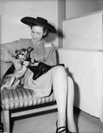 Dub McPhail, Star-Telegram photographer, caught Mrs. Salome Hugo of Amarillo in perfect focus Monday just as a nondescript pooch, obviously a camera hound, bounded into her lap at the photographers' convention at Hotel Texas and commenced chewing on her glove. Result: A composite picture just to let you know the photo men are back in town after a five-year, war-enforced absence. The Southwestern Photographers Association and the Texas Professional Photographers Association held a joint convention. Photograph of Mrs. Salome Hugo of Amarillo and dog sitting on a chair. Published in The Fort Worth Star-Telegram Evening Edition April 29, 1946.