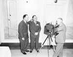 Watch the birdie, please. , Mel Thurman, left, of Abilene and A. (Pat) Rogers of Brownsville pose before a home portrait camera operated by R. S. Forney of Dallas. Thurman is president of the Southwestern Photographers Association, and Rogers head the Texas Professional Photographers Association, which opened a joint convention at Hotel Texas Monday. Published in The Fort Worth Star-Telegram Evening Edition April 29, 1946.