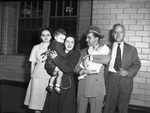 Standing from left to right, Mrs. A. E. Binger, Mrs. Harry L. Binger holding Harry L. Junior, Harry L. Binger holding Christine Binger, and A. E. Binger. Mrs. A. E. Binger is wearing a blouse and skirt, Mrs. Harry L. Binger and Harry L. Jr. are wearing coats, and Harry L. Binger and A. E. Binger are wearing suits. Published in the Fort Worth Star-Telegram.