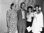 Standing left to right, Mrs. C. D. Reimers, Kenneth Pitts, Mrs. Eloise Snyder and Miss Virginia Greene were honored guests at the Junior Chamber of Commerce "flower show" luncheon. Mrs. Reimers was the general chairman of the show and Mrs. Snyder sang the show's theme song, "Bride's Bouquet," written by Miss Greene and Mr. Pitts. The three women are wearing dresses and flower accessories and Mr. Pitts is wearing a suit and bowtie. Published in The Fort Worth Star-Telegram Morning Edition May 2, 1946.