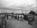 Strikers lined up along the highway as workers left the Convair plant. A picket line works the main gates in the background. The Texas Rangers joined deputy sheriffs in the daily patrol of the strike.