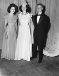 Evelyn Owens, center, was crowned queen at the May Fete at Keller School. Her lady-in-waiting was Mary Sheehey, left, and the prime minister was Don L. Biles Junior, right. Miss Owens and Miss Sheehey are wearing floor length dresses and are holding hands. Mr. Biles is wearing a tuxedo and has his hands behind his back. Miss Owens is wearing a crown. Published in the Fort Worth Star-Telegram morning edition, May 4, 1946.