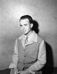 Earl Weniger, 22, who was a member of General Eisenhower's honor guard in Frankfurt, Germany, received his discharge after three years' service. He is the son of Mr. and Mrs. C. H. Weniger of 2013 Ashland. The ex-private first class trained as a paratrooper and spent 14 months in Europe with the 82nd Airborne Division. He is a graduate from Arlington Heights High School. He plans to enter North Texas Agricultural College next fall. He is shown sitting down and wearing a buttoned coat and a paisley patterned necktie. Published in the Fort Worth Star-Telegram evening edition, May 7, 1946.