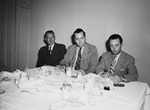 New car dealers of Fort Worth, Texas met to make entertainment plans for the Texas Automotive Dealers Association convention. Seated left to right, H. B. Ransom, president of the local dealers association; Tom Abbott, district director for the Texas organization, and Basil Roper, secretary of the Fort Worth, Texas group. The three men are sitting at a dinning table. Published in the Fort Worth Star-Telegram morning edition, May 10, 1946.