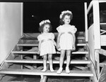 Humphreys, Martha Sue; Turner, Joyce; Girls; Flower shows; Festivals; Flowers; Fashion shows; Dresses; Hair ornaments; Stairways