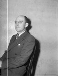 Fort Worth Typographical Union elected Jack Burdette as President. In the image, Burdette is shown seated on a wooden chair and dressed in a button-coat and tie. He is wearing eyeglasses. Published in the Fort Worth Star-Telegram evening edition, May 16, 1946.