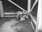 Four baby prong-horned antelope, roped off the Bar-S Ranch near San Angelo by Forest Park Zoo Hunters. They are pictured here. The baby antelopes are placed in a cage. Three of them are resting on the floor and one is standing. Four babies are taking life easy in their new home at local menagerie after their arrival. Published in the Fort Worth Star-Telegram evening edition, May 16, 1946.