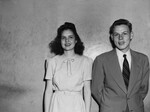 Ethel Hartsfield will deliver the salutatory address and Luther McHam, president of the senior class, will be the valedictorian at the commencement exercises of Masonic Home High School on May 27 in the school auditorium. Both are standing in front of a wall. Ethel is wearing a belted dress and Luther is wearing a suit. There will be a presentation of diplomas to the seven graduates by Steve Cooke, president of the board. Published in the Fort Worth Star-Telegram evening edition, May 23, 1946.