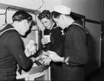 Smith, Jimmy (SN); Henry, Jimmy D. (EM3); McDowell, Don (SF3); United States. Navy; Sailors; Railroad strikes; Jukeboxes; sandwiches; Military uniforms