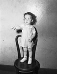 Daniel Wayne Buol, two and a half year old, brown-eyed, red-haired, Georgian came to Fort Worth, Texas this week with only one thought in mind, to tell the folks here about "Itty-bitty" hippo he saw in Memphis on his way to Texas. Daniel and his brother Rudolph and their parents, Mr. and Mrs. A. B. Buol, of Rossville, Georgia, are visiting an aunt and uncle here. Tuesday, they dropped by the Star-Telegram to contribute $1 to the fund to buy the baby hippo they visited last week in Overton Park, Memphis. In the image, Daniel is standing on a chair handing a dollar bill. Published in the Fort Worth Star-Telegram.