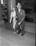 Mrs. Doris Bradshaw walking up steps of Criminal Court Building with her attorney, W. P. McLean Junior.
