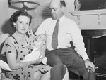A new man has entered the lives of Ida Van Blarcom Carlton and Langford Carlton. The happy family scene shows the Carlton's holding their son Langford Van. He was named after his father and Ida's late father. Langford Van was just twelve days-old when the surprise adoption took place. Mrs. Carlton is wearing a dress with a leaf pattern. She is sitting in an armchair, holding her sleeping son. Mr. Carlton is sitting on the arm of the chair with a cigar in his hand. He is dressed in a suit. There is a lamp and a fireplace behind the trio.