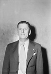 World War II veteran Ralph Cobb moved from San Angelo to Fort Worth, Texas to open a real estate office. Until he can find a permanent location, his office is in his home which he shares with his parents, Dr. and Mrs. W. W. Cobb. Mr. Cobb served twenty-three months in the Air Force as an instrument technician. Before he entered the service, he was an independent oil dealer in San Angelo, Texas. Mr. Cobb is dressed in a suit and standing against a wall.