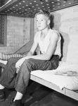 Isaac Roberts, a fifteen year-old boy from Cleburne, Texas was charged with murder. As he sat on a cot in the Johnson County jail he related how he planned and carried out the murder of his uncle Marvin Pitts, a Rock Creek community dairyman. Isaac is wearing a t-shirt and blue jeans. There is a newspaper sitting on the edge of his cot.