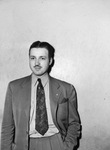 James Lamar Stuckert Junior is a twenty-five year old Navy Veteran. He was awarded an Air Medal six months after being discharged. The medal was for his service as a navigator in the Pacific area. Since returning home, he has assumed his duties as partner in the Stuckert-Owens Lumber Company. Mr. Stuckert is standing against a wall with a hand in his pocket. He is dressed in a suit with a pocket square.