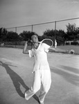 McMillan, Warren; Tennis; Tennis players; Tennis rackets; T-shirts; Boys; Fences; Trees