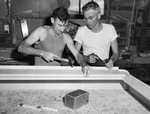 Disabled vets at work; Harry Enochs, left, injured by a hand grenade on Saipan, gets on-the-job training from instructor Fred Lose at Bast Planing Mill, Fort Worth, 06/27/1946